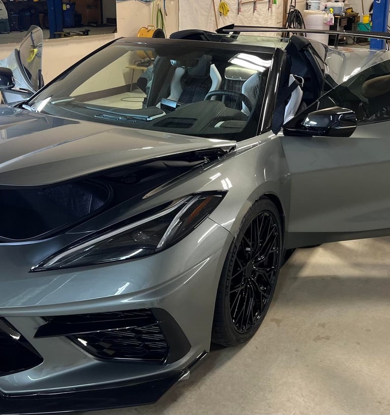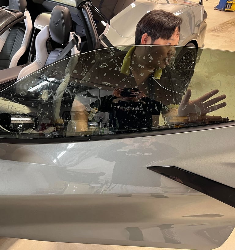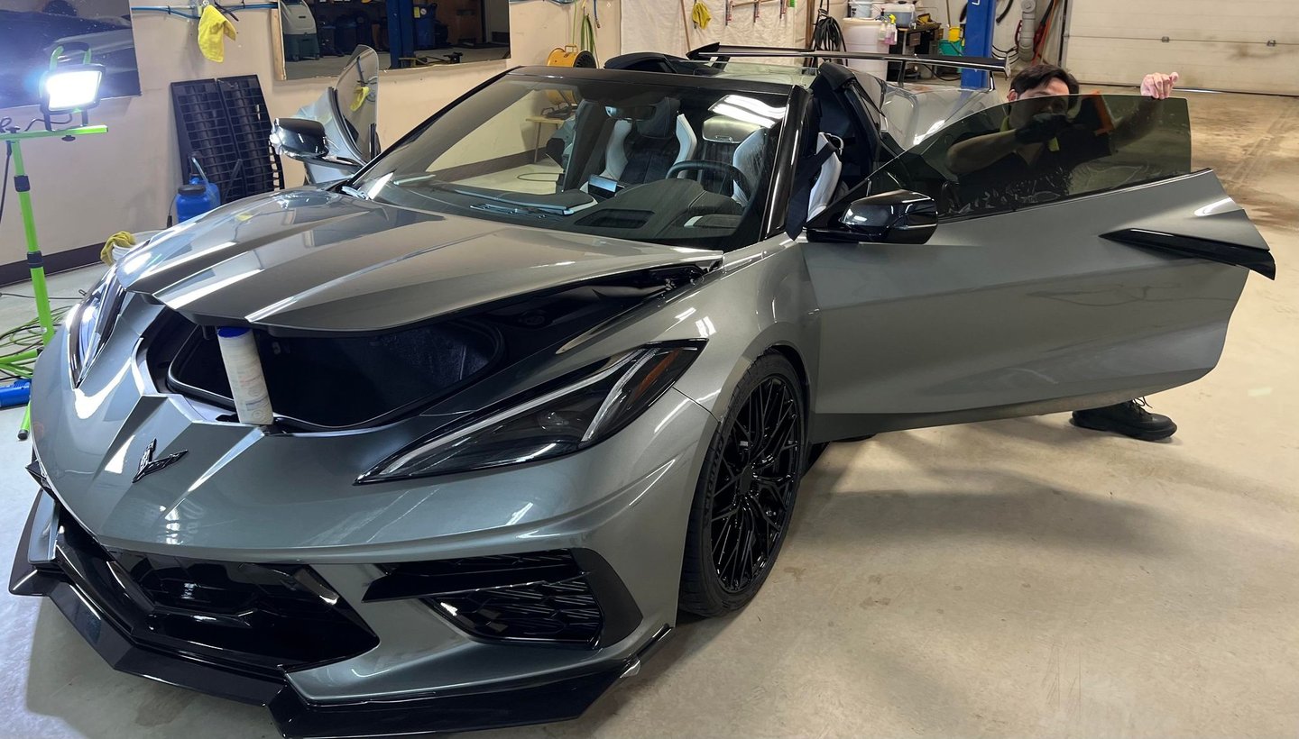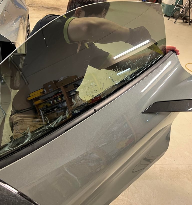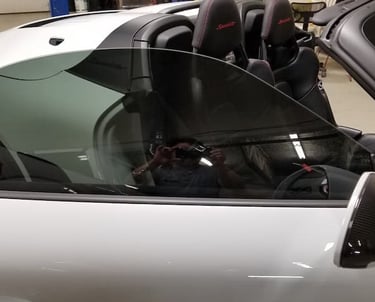 Tinting is the process to apply a thin laminate film to a vehicle's windows, glass, or light or mirrors in order to darken them.