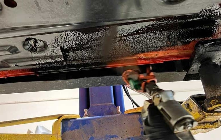 Undercoating is an oil or wax based compound which is sprayed onto the entire underbody of the vehicle penetrating all of those hard to reach areas where moisture likes to hang out and get into trouble.
